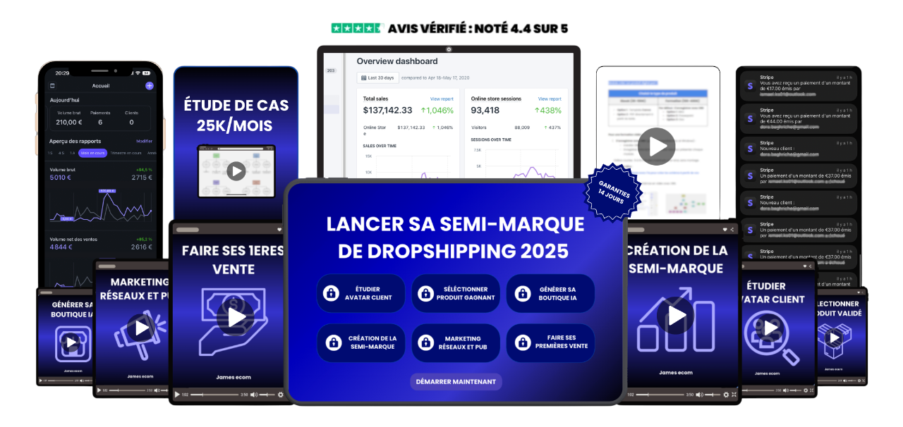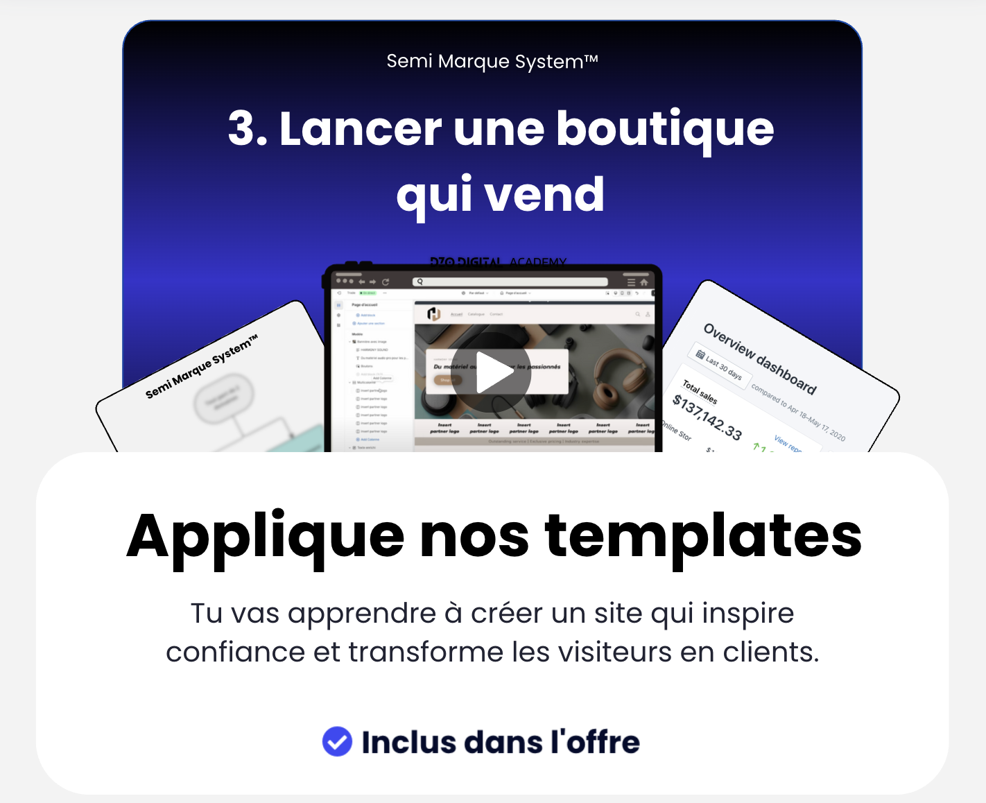 → Tu recopies nos modèles de pages, visuels et textes pour créer une boutique crédible et optimisée dès le départ.